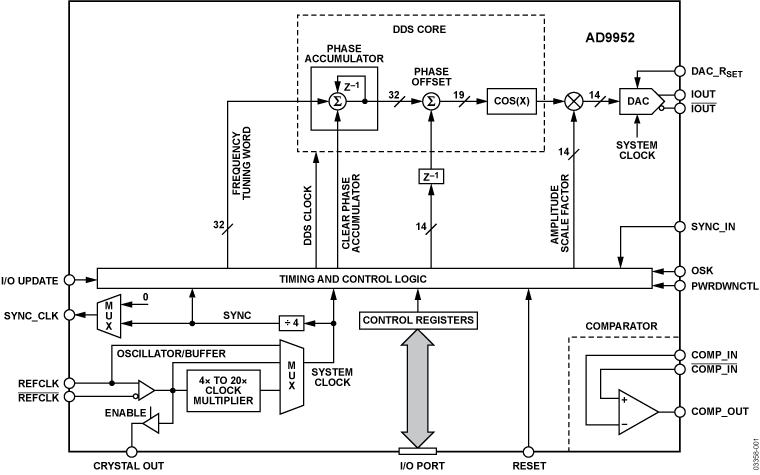 AD9952YSVZ是一款直接数字频率合成器(DDS),内置一个14位DAC(数模转换器),工作速率最高达400 MSPS.该器件使用先进的DDS技术,连同高速\高性能DAC,构成数字可编程的完整高频合成器,能够产生最高200 MHz的频率捷变模拟输出正弦波.AD9952专为提供快速跳频和精密调谐分辨率(32位频率调谐字)而设计.频率调谐和控制字通过串行I/O端口载入AD9952.额定工作温度范围为−40°C至+105°C工业温度范围.