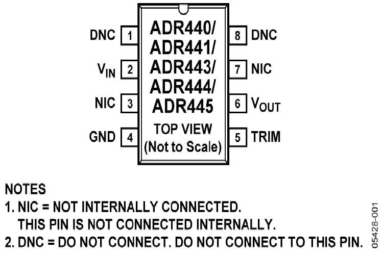 ADR444BRZ的拉电流输出最高达10 mA,灌电流能力最大为-5 mA.它还具有调整引脚,可以在0.5%范围内调整输出电压,而性能则不受影响.