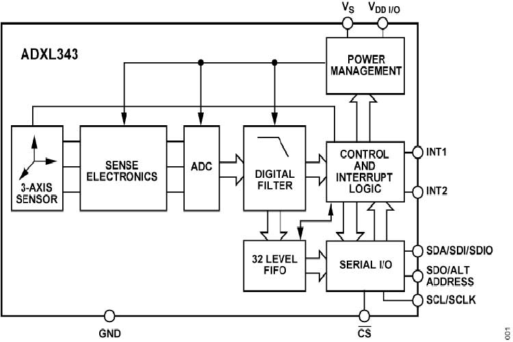 ADXL343采用3 mm × 5 mm × 1 mm\14引脚小型超薄塑料封装.