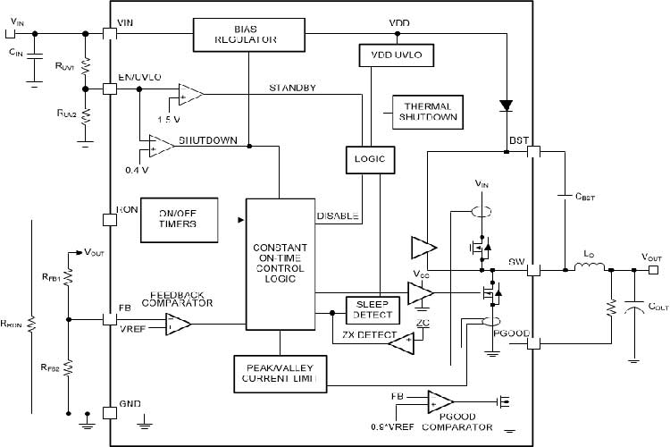 集成式 0.34Ω NFET 同步整流器省去了外部肖特基二极管