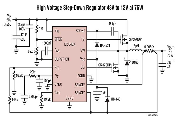 LT3845AIFE#TRPBF 是一款高电压\同步\电流模式控制器,用于中等至高功率的高效率电源.该器件提供了一个 4V 至 60V 的宽输入范围 (7.5V 最小启动电压).一个板载稳压器通过直接从 VIN 提供 IC 电源而简化了偏置要求.