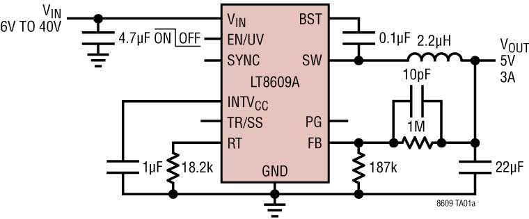 -A 版本采用中等速度开关边沿,相比 LT8609 基础版 EMI 更低.