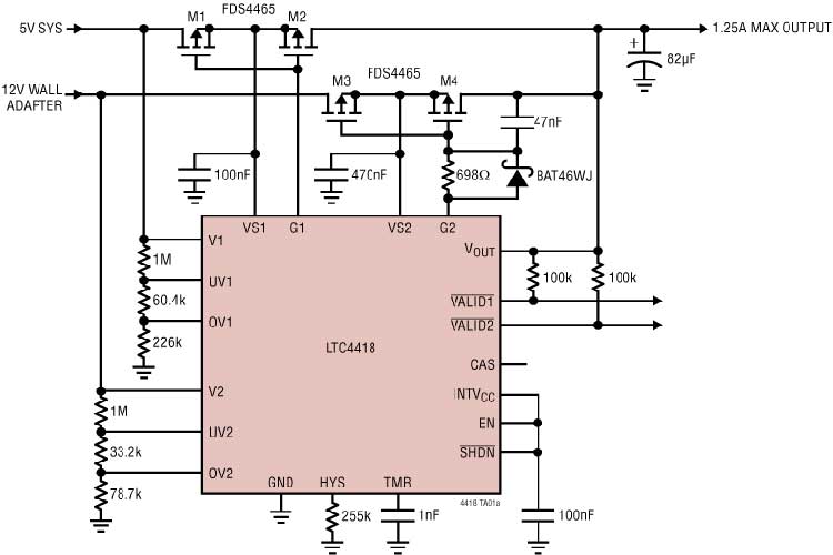 LTC4418IUF#TRPBF内置了快速非重叠开关电路以防止发生反向和交叉传导,同时尽量地减少输出压降.栅极驱动器包括一个 6V 箝位以保护外部 MOSFET.一种受控的软启动功能可较大限度地减小启动浪涌电流.当输入电源处于其 OV/UV 窗口之内的持续时间已达到验证时间时,漏极开路 VALID 输出将发出指示信号.验证时间可停用或采用一个外部电容器进行调节.