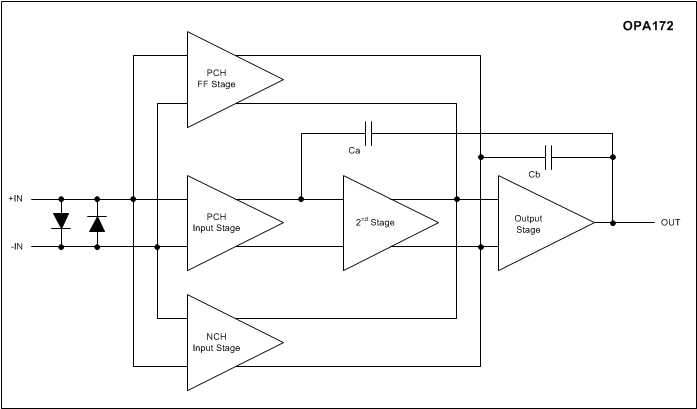 与大多数只有一个额定电源电压的运算放大器不同,OPAx171 系列的额定电压范围为 2.7V 至 36V.超出电源轨的输入信号不会导致相位反转.OPAx171 系列可在容性负载高达 300pF 时保持稳定.在正常运行时,输入电压范围为负电源轨 - 100mV 至正电源轨 ± 2V.这些器件可在比正电源轨电压高 100mV 的满轨到轨输入电压下运行,但在正电源轨电压 ± 2V 范围内运行时,性能会有所下降.