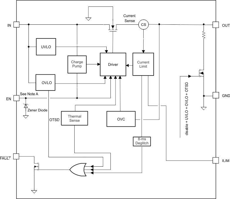 TPS25200DRVR具有一个内部 60mΩ 电源开关,用于在各种异常情况下保护电源\器件和负载.该器件支持高达 2.6A 的连续负载电流.可通过单个接地电阻在 85mA 至 2.9A 范围内对电流限制进行编程.当发生过载时,输出电流被限制在由 RILIM 设定的电流值上如果发生持续过载,器件最终会进入热关断状态,以防止损坏 TPS25200.