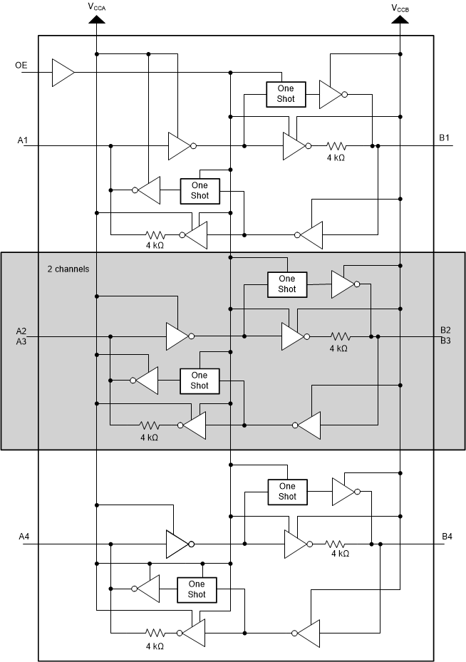 A 端口支持 1.2V 至 3.6V 电压,B 端口支持 1.65V 至 5.5V 电压 (VCCA ≤ VCCB)